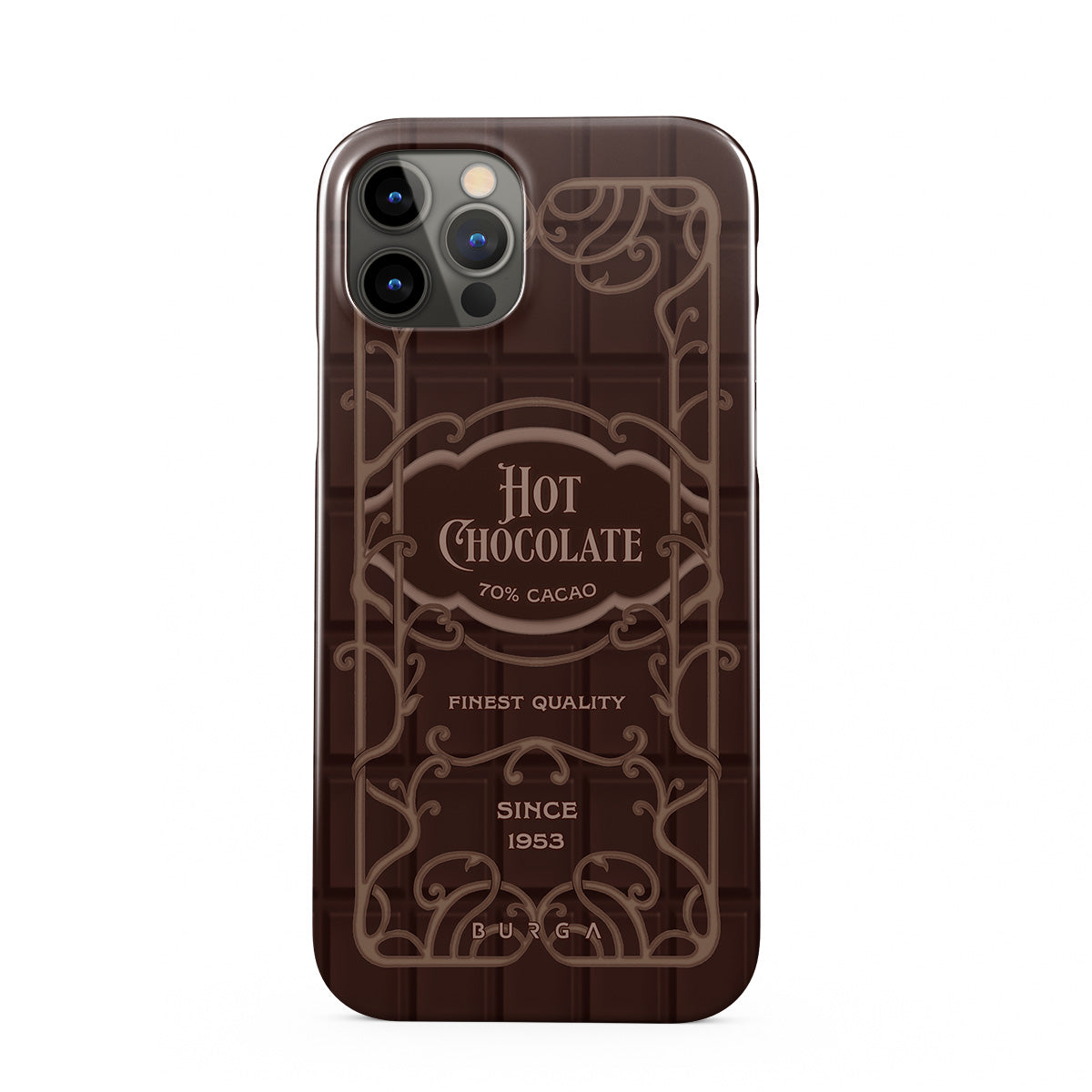 En este diseño: etiqueta de chocolate caliente, diseño de chocolate marrón, estilo retro de empaquetado