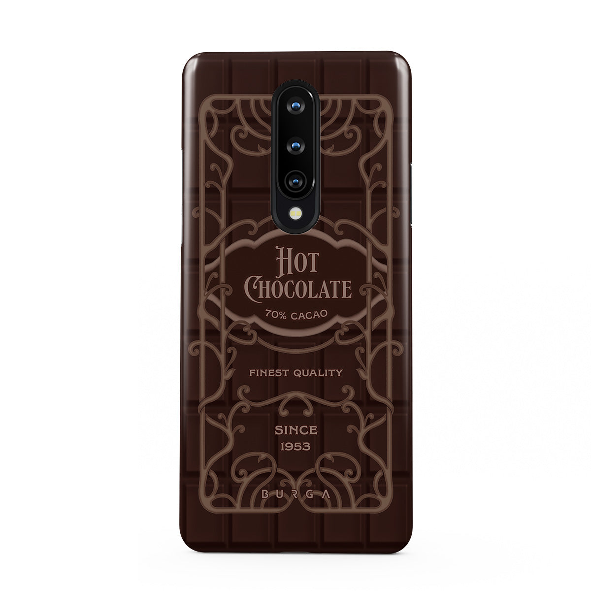 En este diseño: etiqueta de chocolate caliente, diseño de chocolate marrón, estilo retro de empaquetado