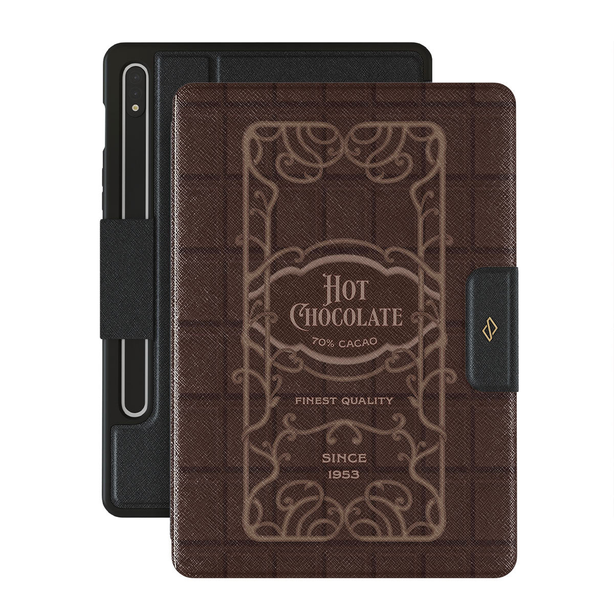 En este diseño: etiqueta de chocolate caliente, diseño de chocolate marrón, estilo retro de empaquetado
