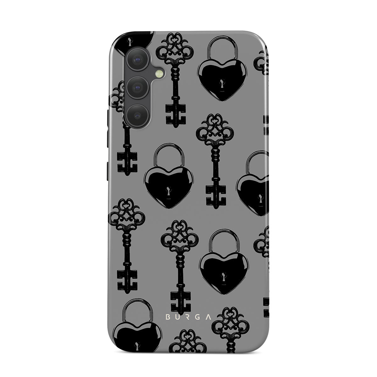 En este diseño: cerraduras ornamentadas, llaves vintage y detalles en negro.