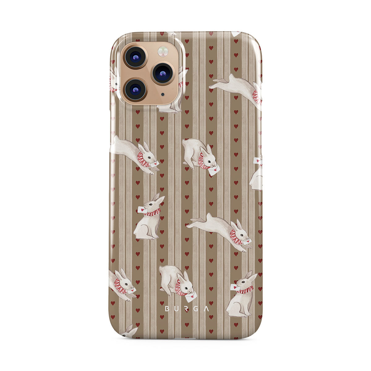 En este diseño: conejos blancos, corazones, amor, cartas, rayas vintage.