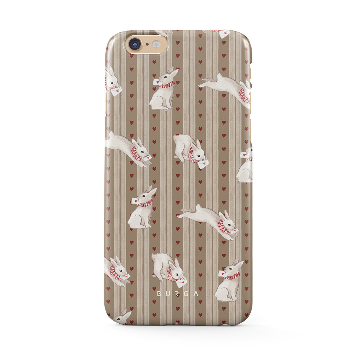 En este diseño: conejos blancos, corazones, amor, cartas, rayas vintage.