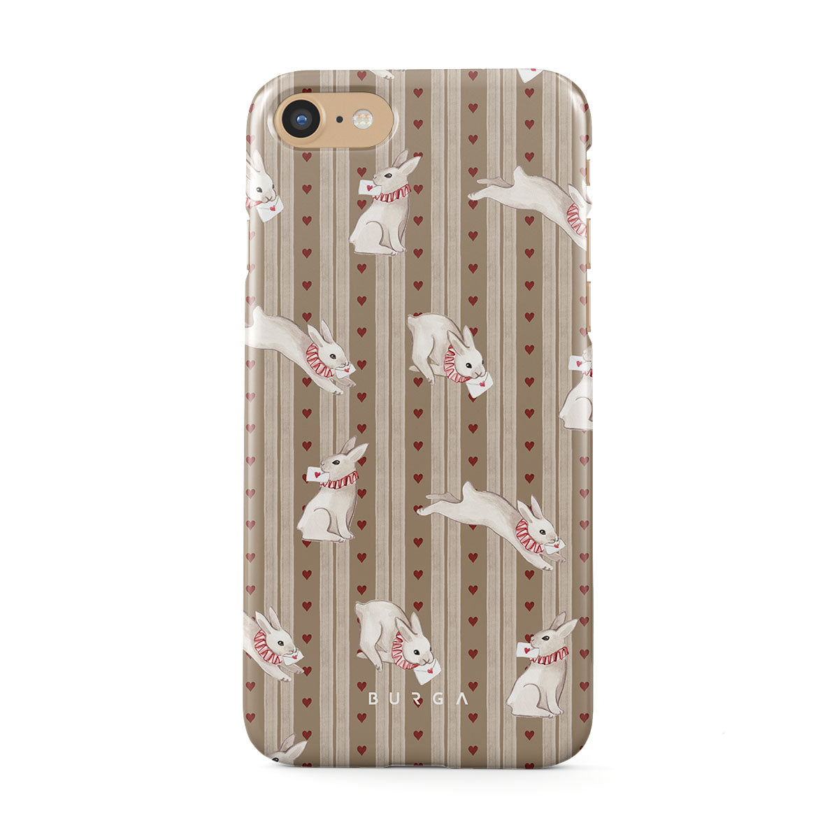 En este diseño: conejos blancos, corazones, amor, cartas, rayas vintage.