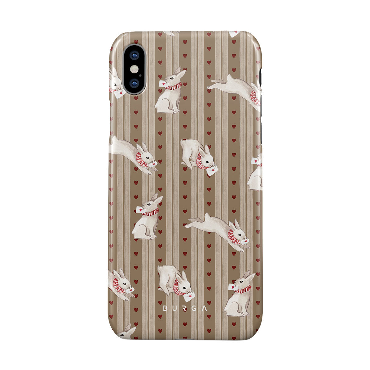 En este diseño: conejos blancos, corazones, amor, cartas, rayas vintage.