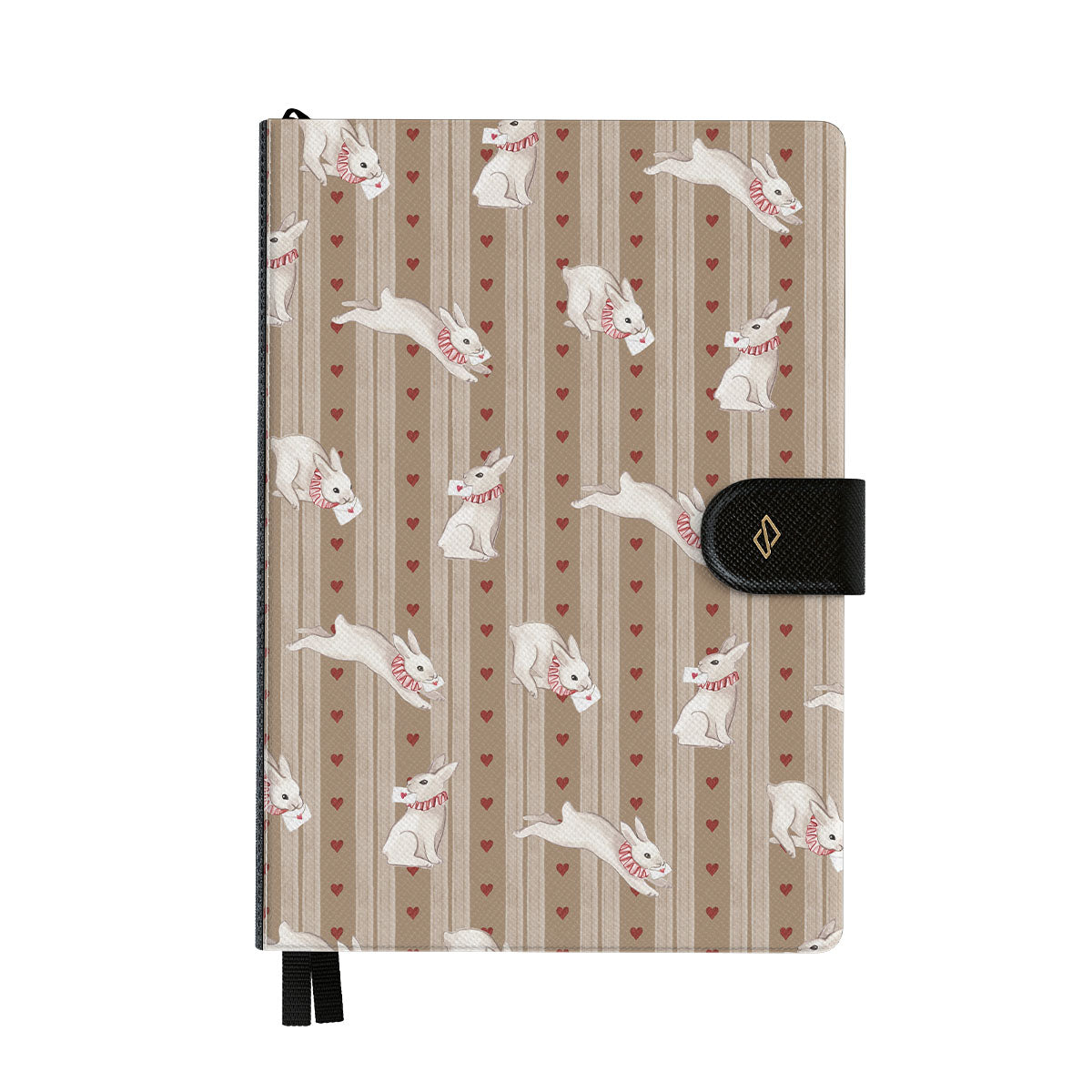 En este diseño: conejos blancos, corazones, amor, cartas, rayas vintage.
