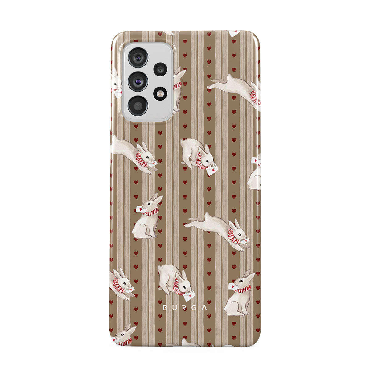 En este diseño: conejos blancos, corazones, amor, cartas, rayas vintage.