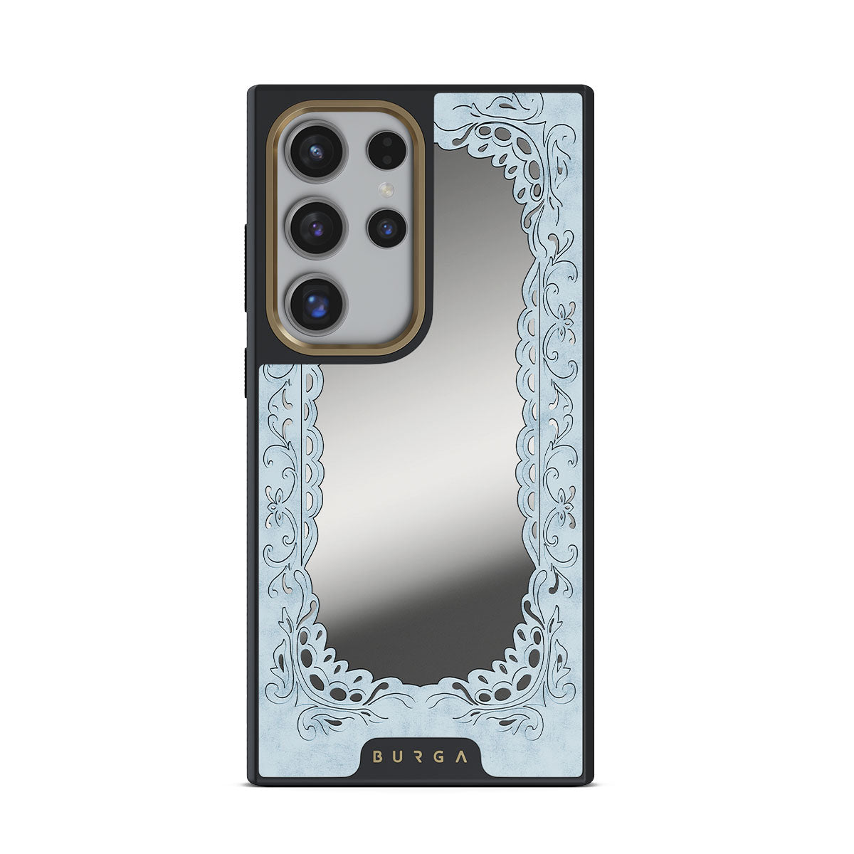 En este diseño: marco azul, marco vintage, efecto espejo.