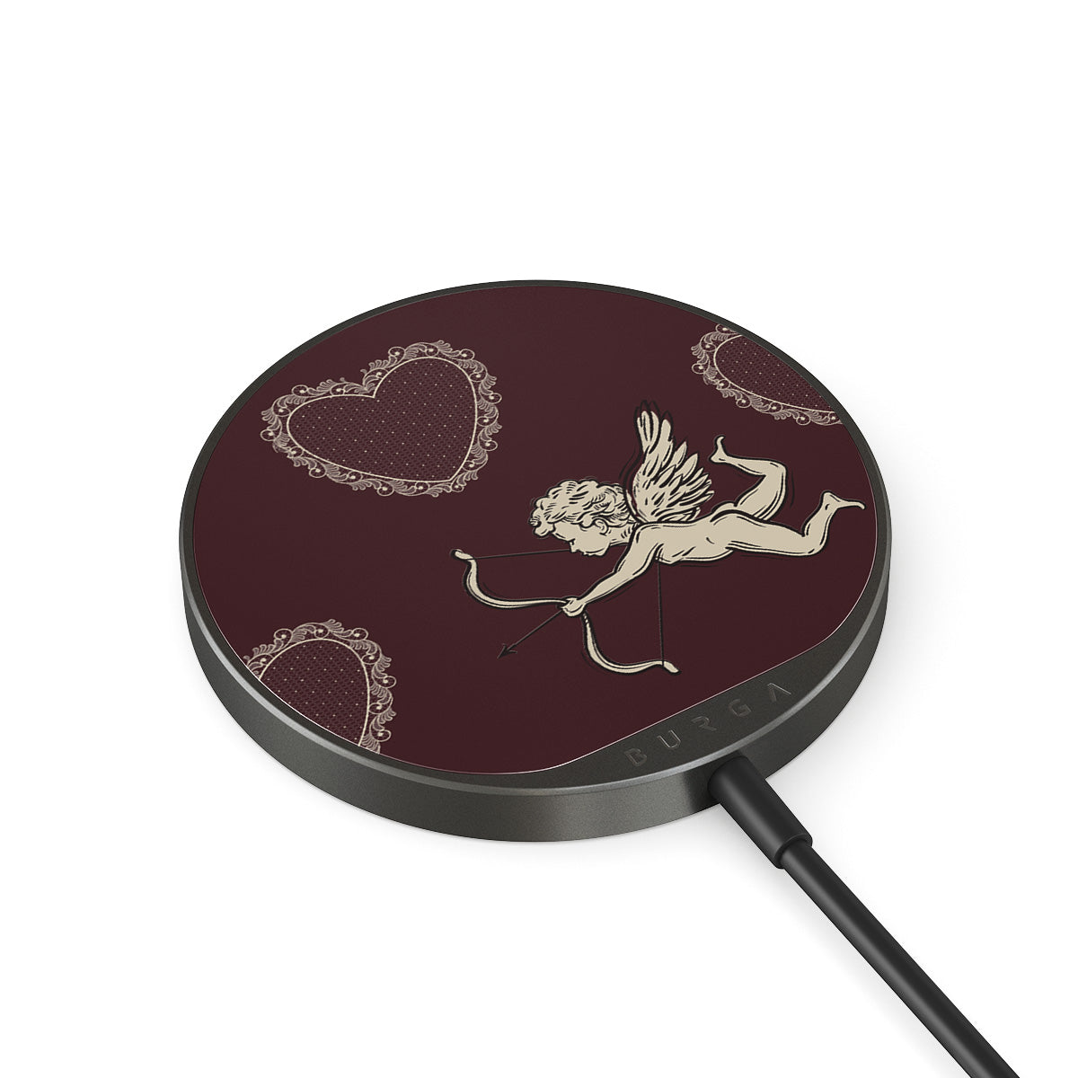 En este diseño: ángeles, Cupido, corazones rojos y estampado romántico.