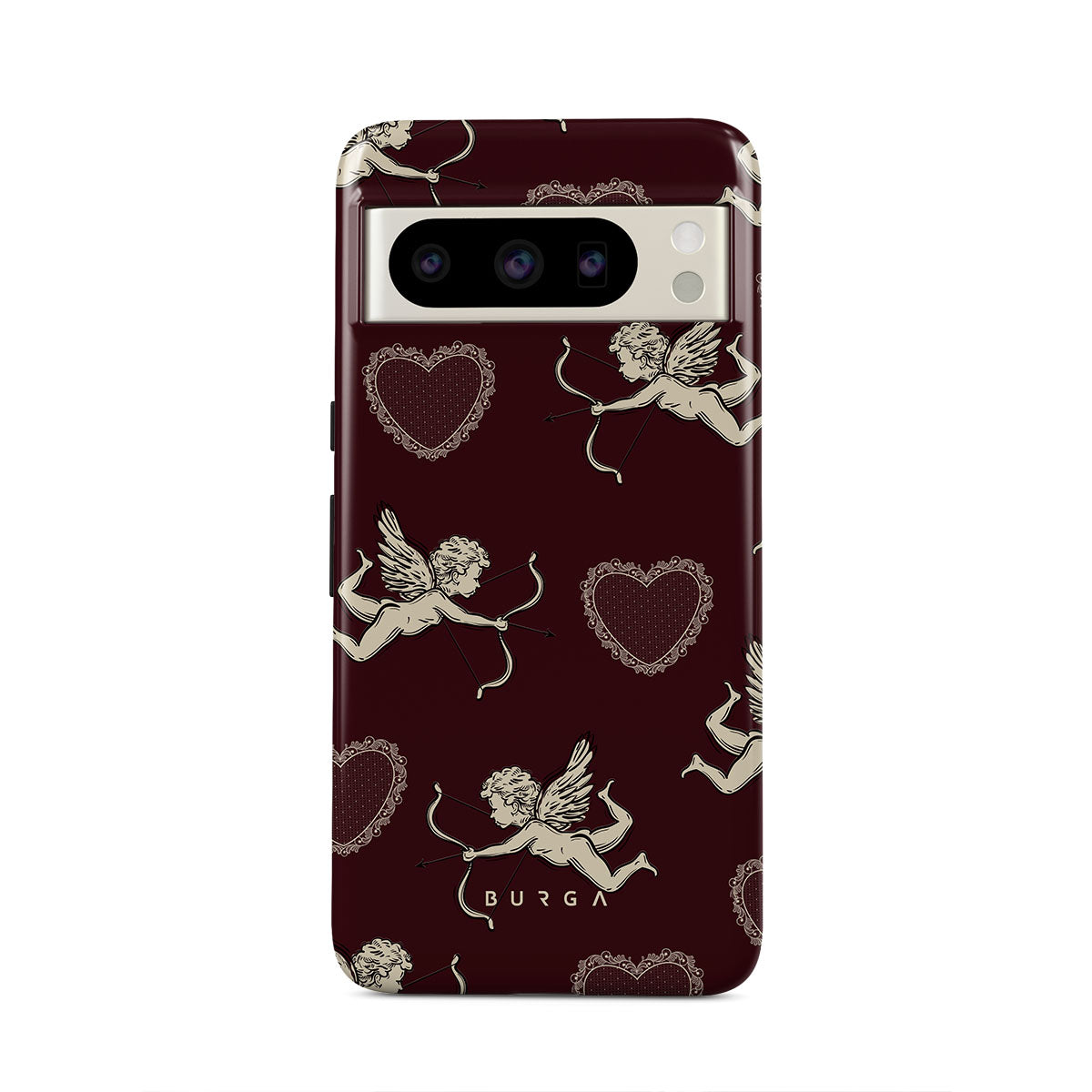 En este diseño: ángeles, Cupido, corazones rojos y estampado romántico.