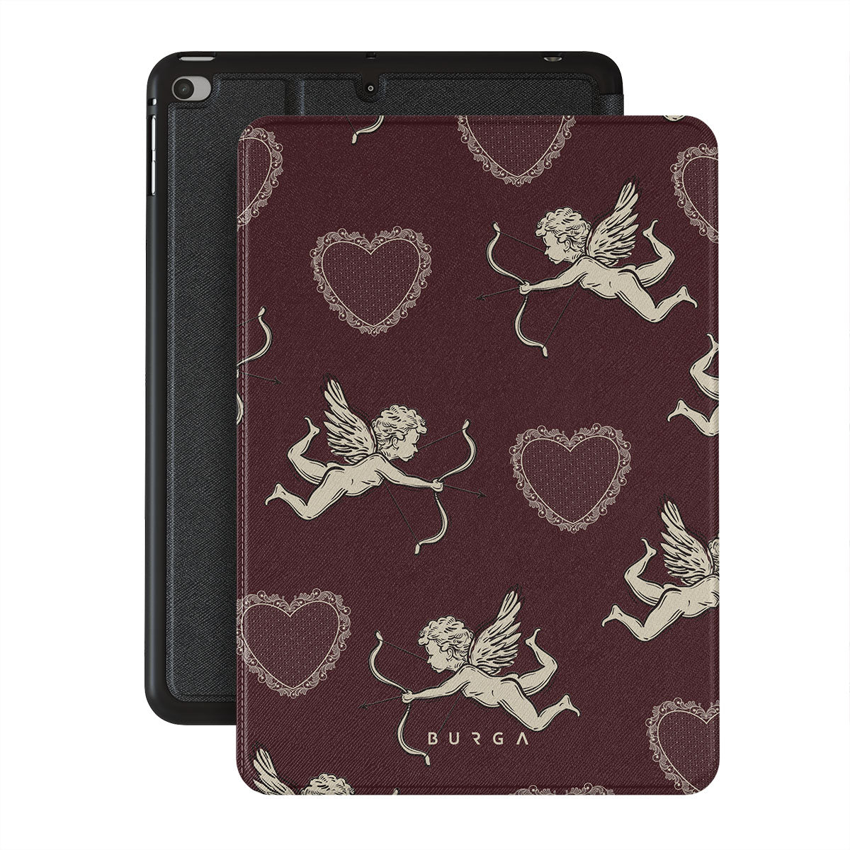 En este diseño: ángeles, Cupido, corazones rojos y estampado romántico.