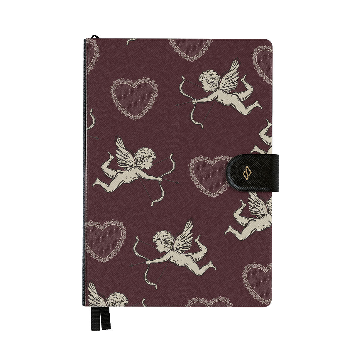 En este diseño: ángeles, Cupido, corazones rojos y estampado romántico.