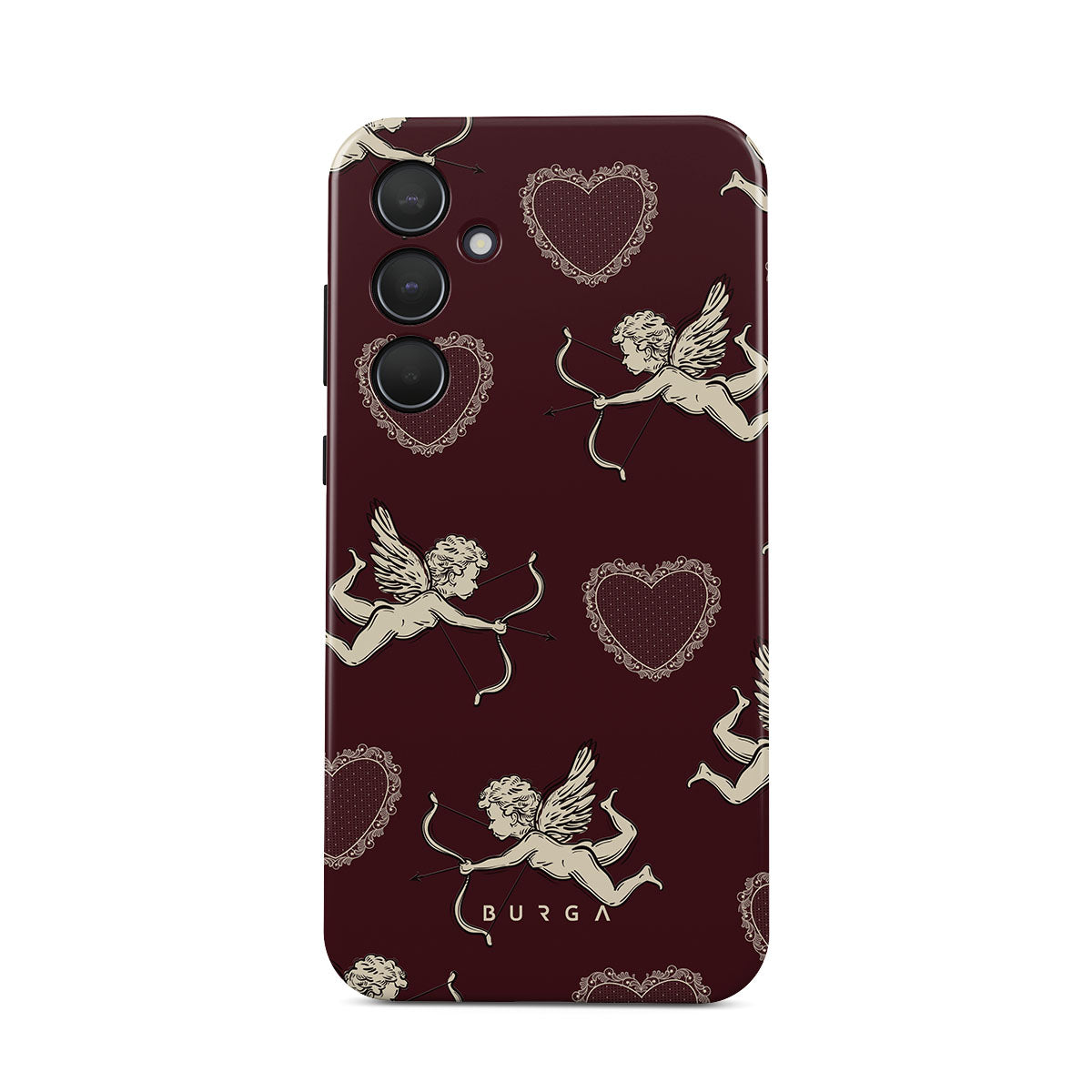 En este diseño: ángeles, Cupido, corazones rojos y estampado romántico.