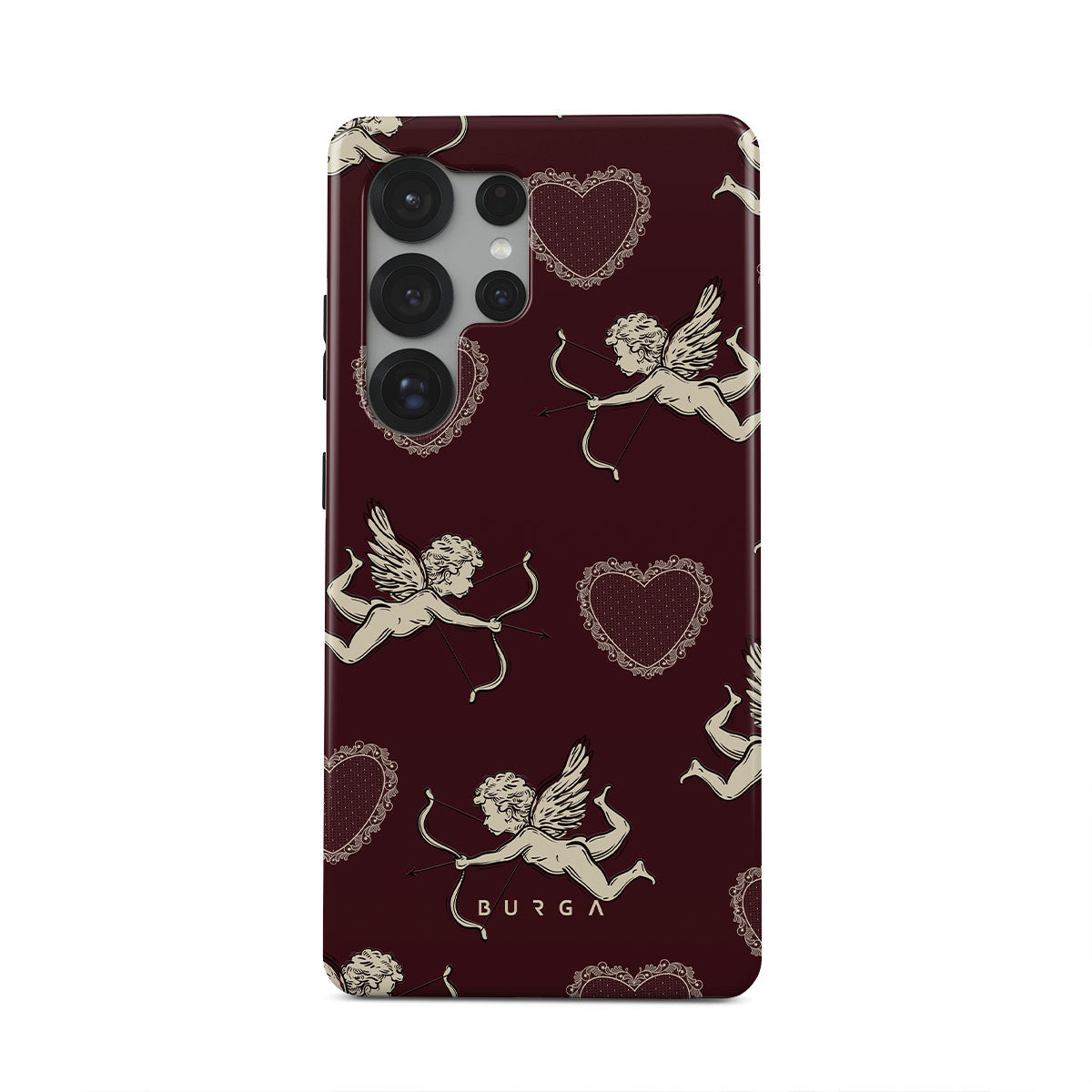 En este diseño: ángeles, Cupido, corazones rojos y estampado romántico.