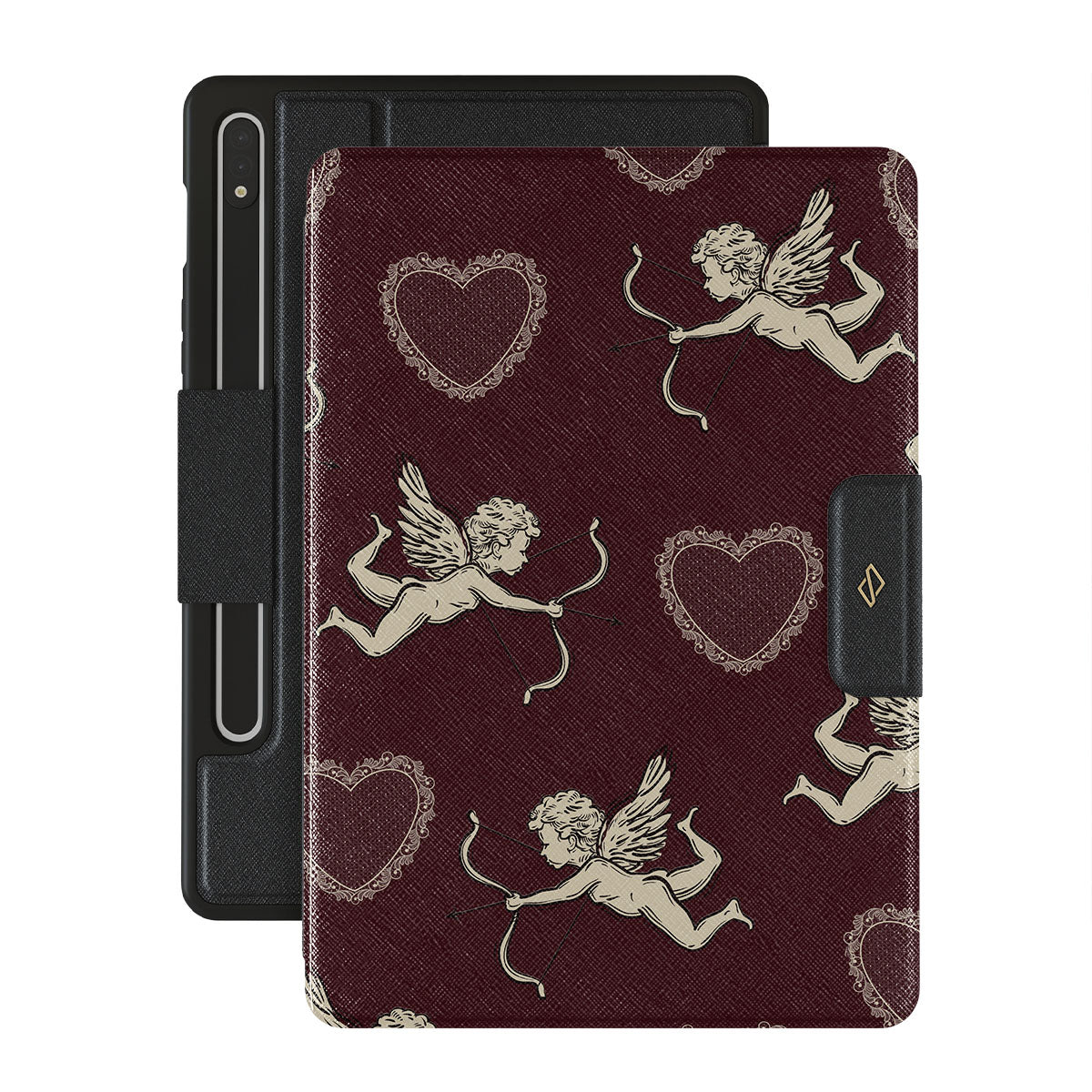 En este diseño: ángeles, Cupido, corazones rojos y estampado romántico.