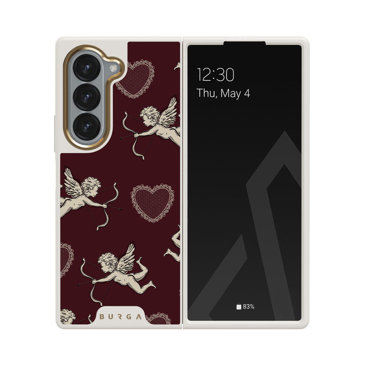 En este diseño: ángeles, Cupido, corazones rojos y estampado romántico.