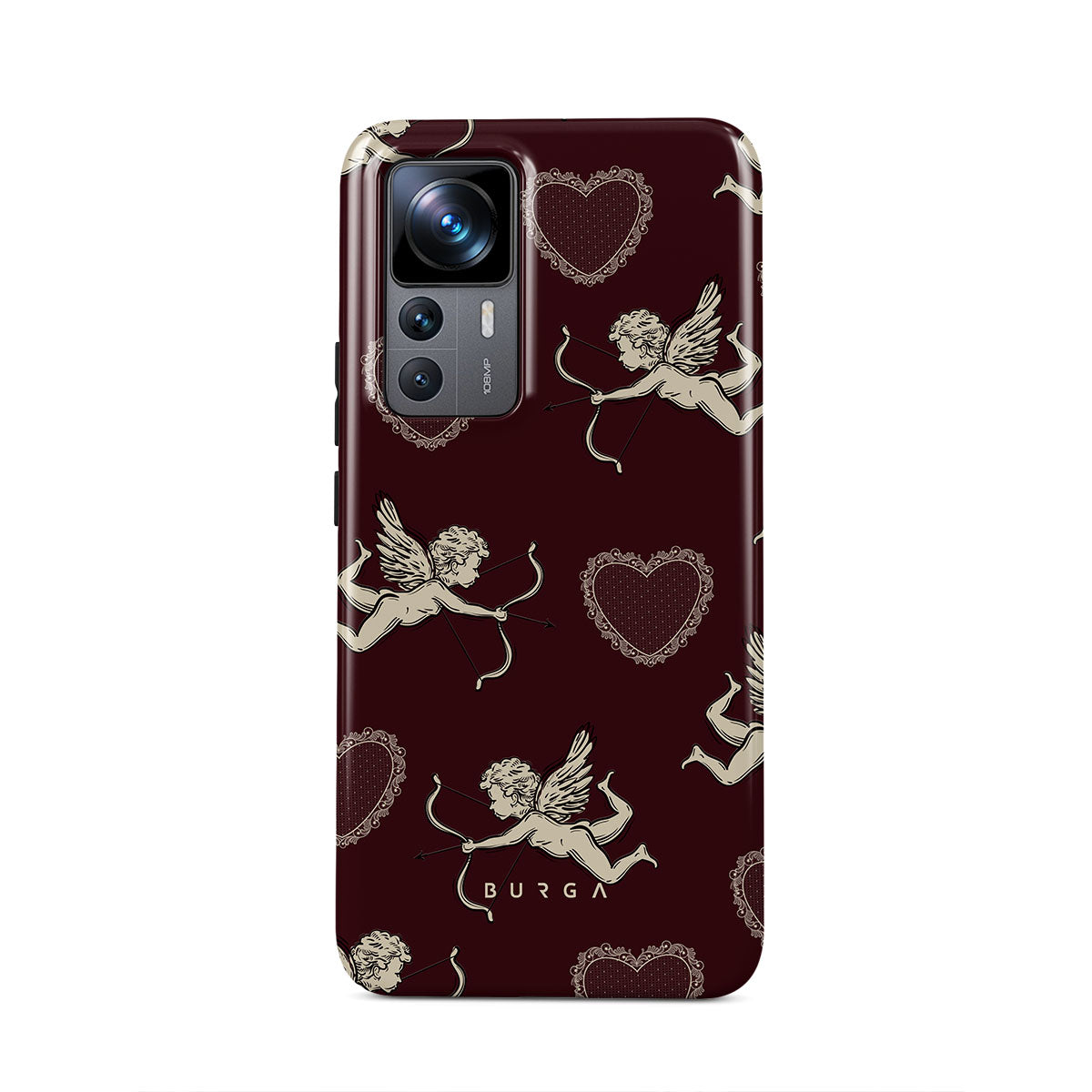 En este diseño: ángeles, Cupido, corazones rojos y estampado romántico.
