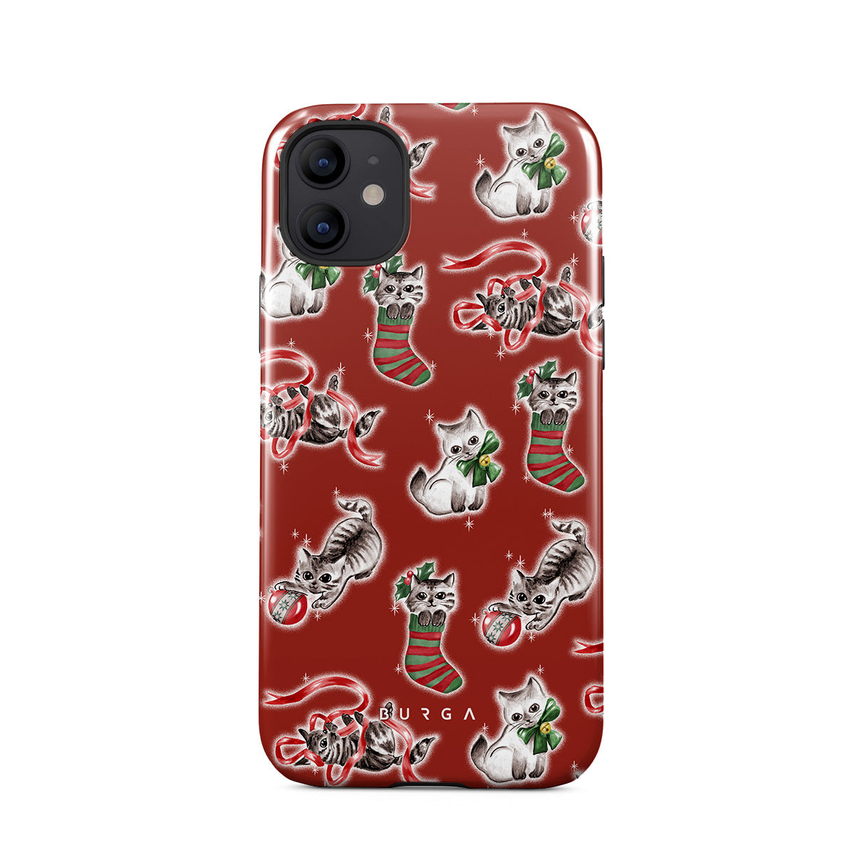 En este diseño: gatos, medias navideñas, gatitos, patrón rojo y verde, gatos juguetones, adornos navideños