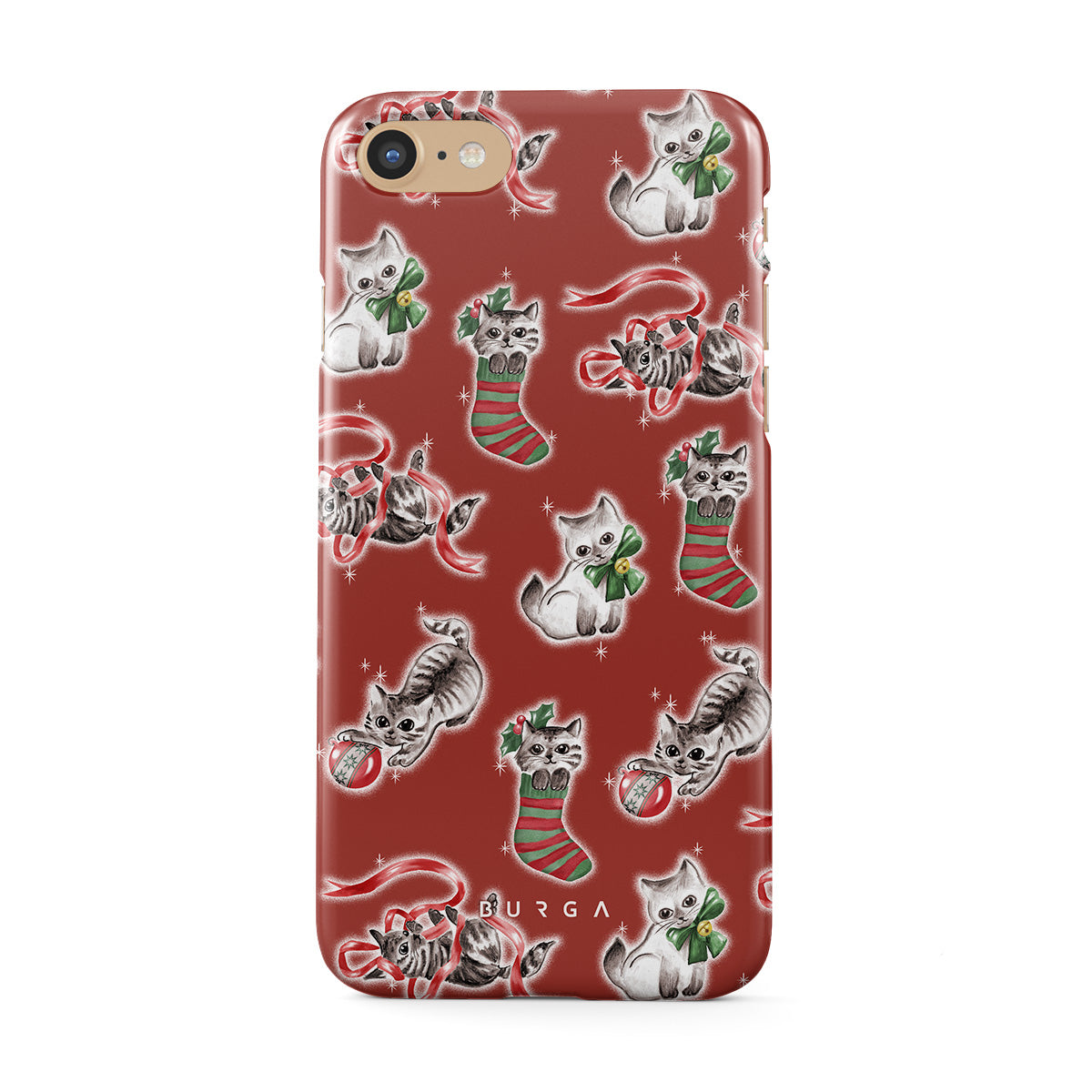En este diseño: gatos, medias navideñas, gatitos, patrón rojo y verde, gatos juguetones, adornos navideños