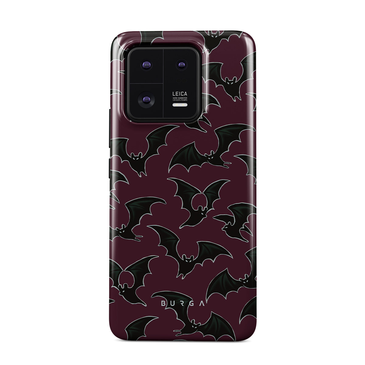 En este diseño: tema de Halloween, murciélagos, fondo burdeos
