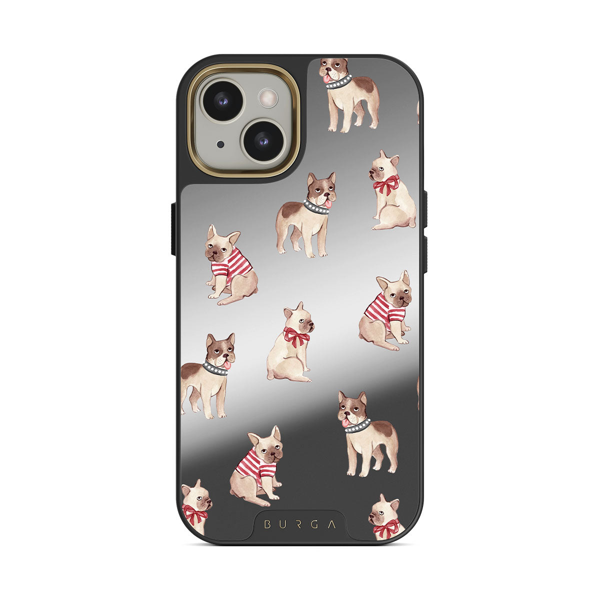 En este diseño: bulldogs franceses, perros, mascotas adorables, espejo.