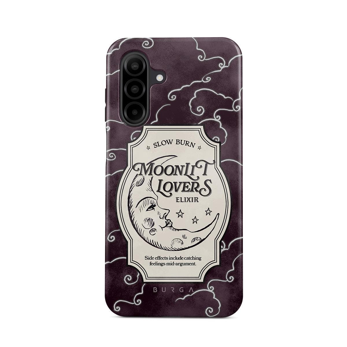 En este diseño: texto gótico, luna, estrellas, nubes