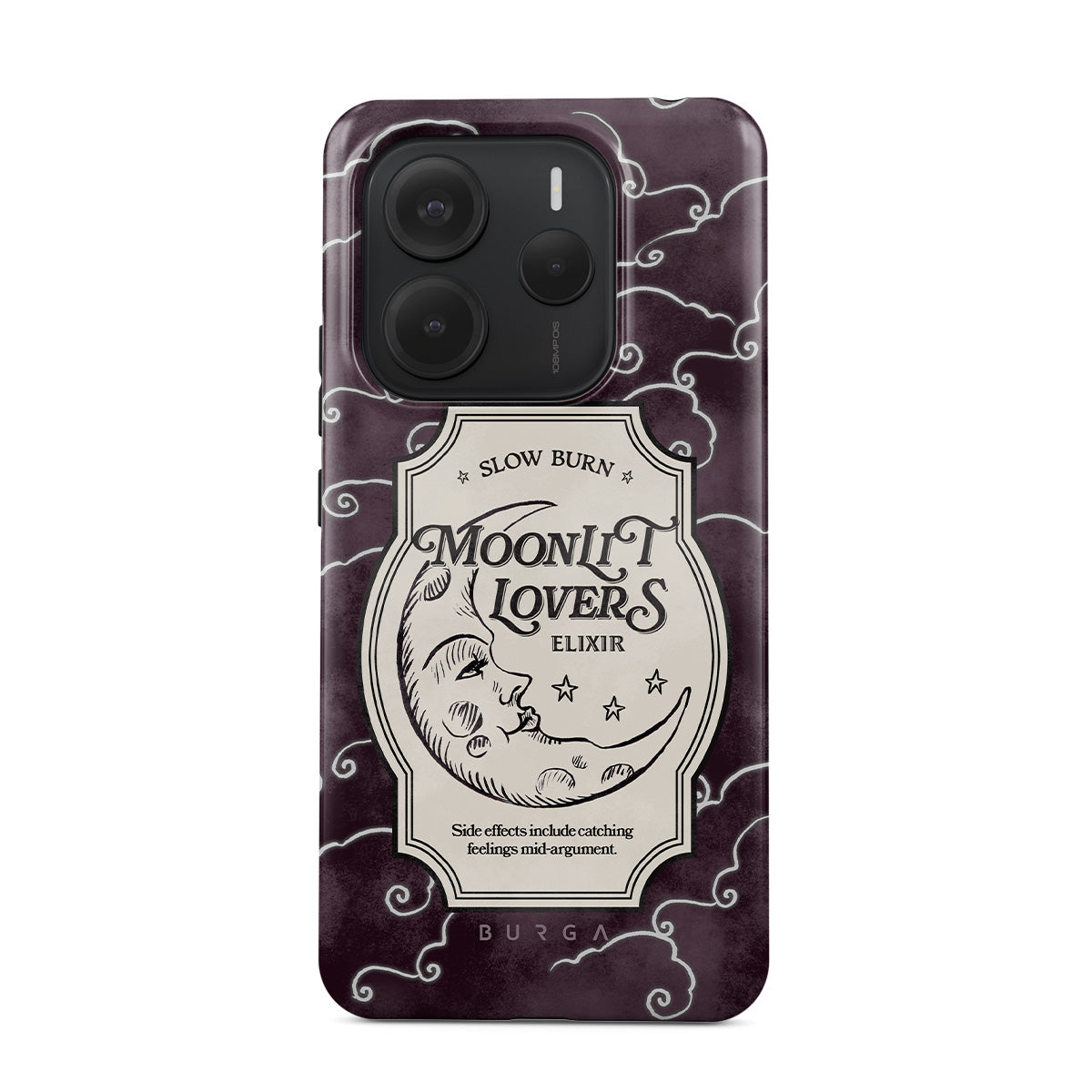 En este diseño: texto gótico, luna, estrellas, nubes