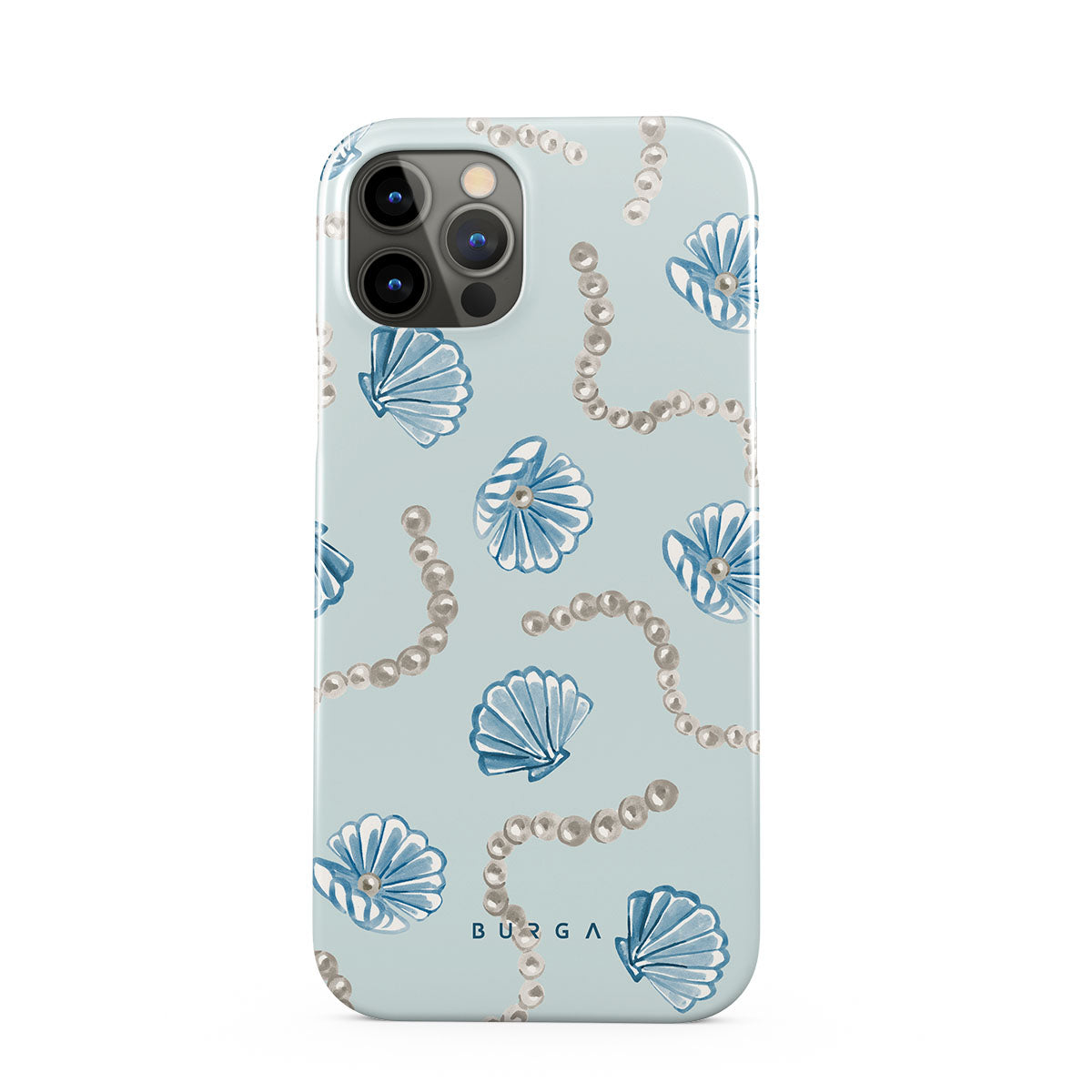 En este diseño: perlas, conchas, fondo azul claro, elementos del mar.
