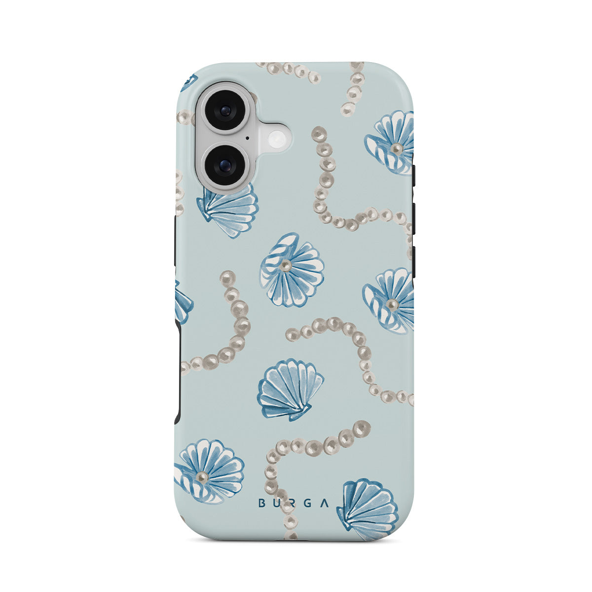 En este diseño: perlas, conchas, fondo azul claro, elementos del mar.
