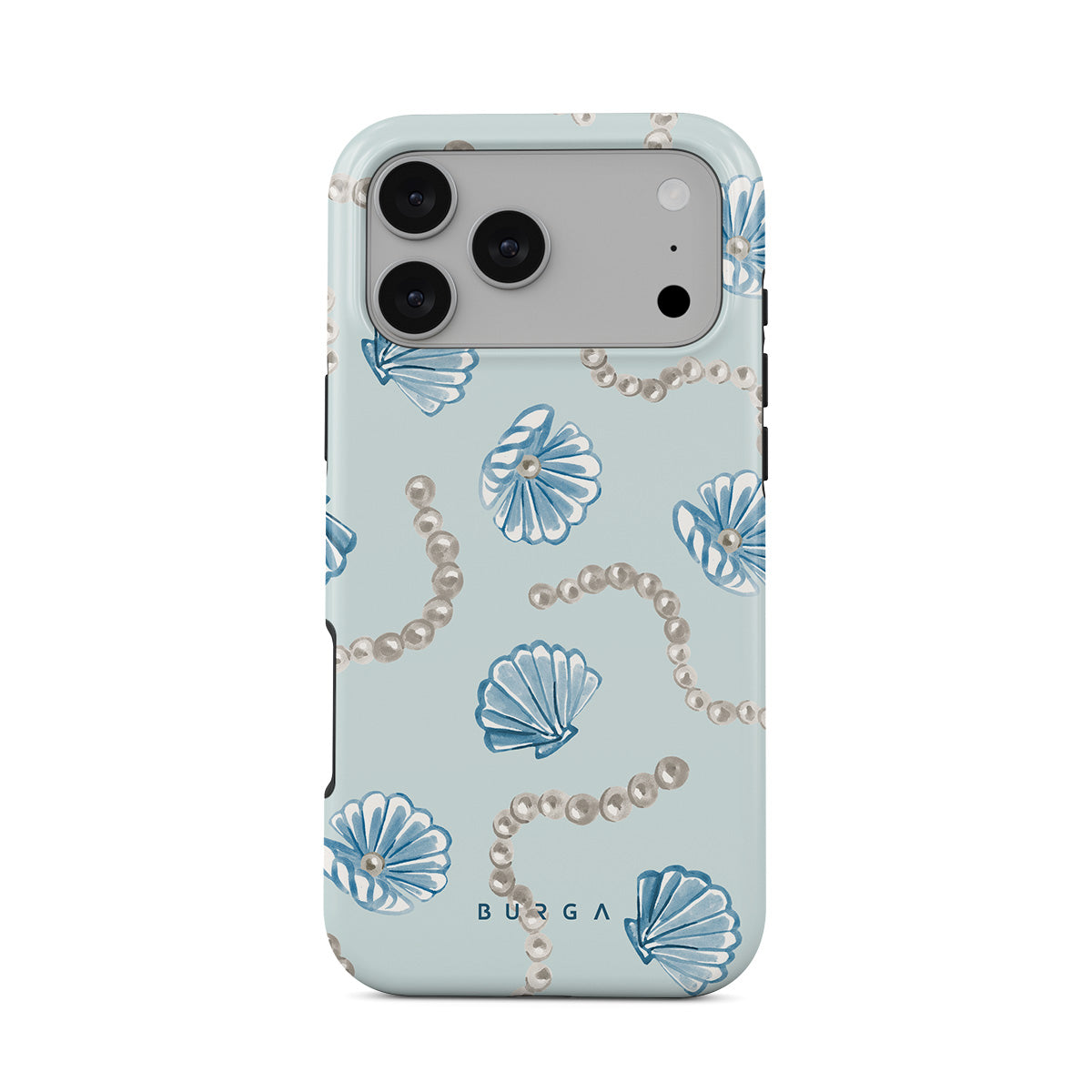 En este diseño: perlas, conchas, fondo azul claro, elementos del mar.