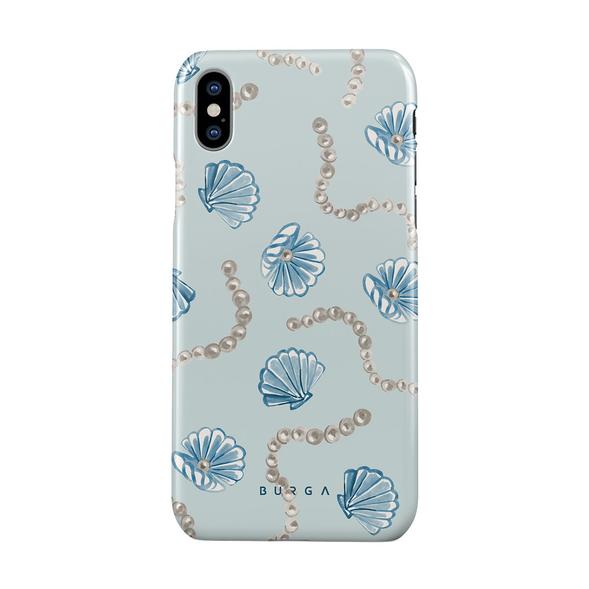 En este diseño: perlas, conchas, fondo azul claro, elementos del mar.