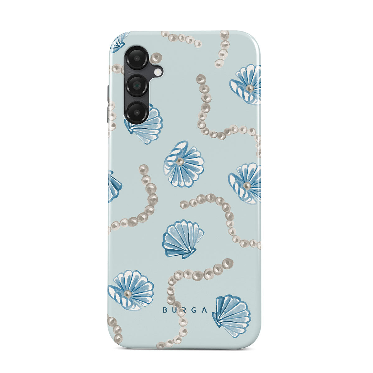 En este diseño: perlas, conchas, fondo azul claro, elementos del mar.