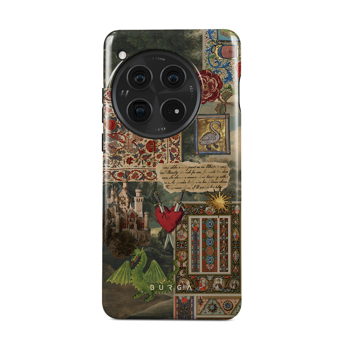 Características de este diseño: una fuente de caligrafía manuscrita, impresiones de estilo vintage, diseño medieval, estampado floral, ilustraciones de libros antiguos, corazón, dragón, castillo