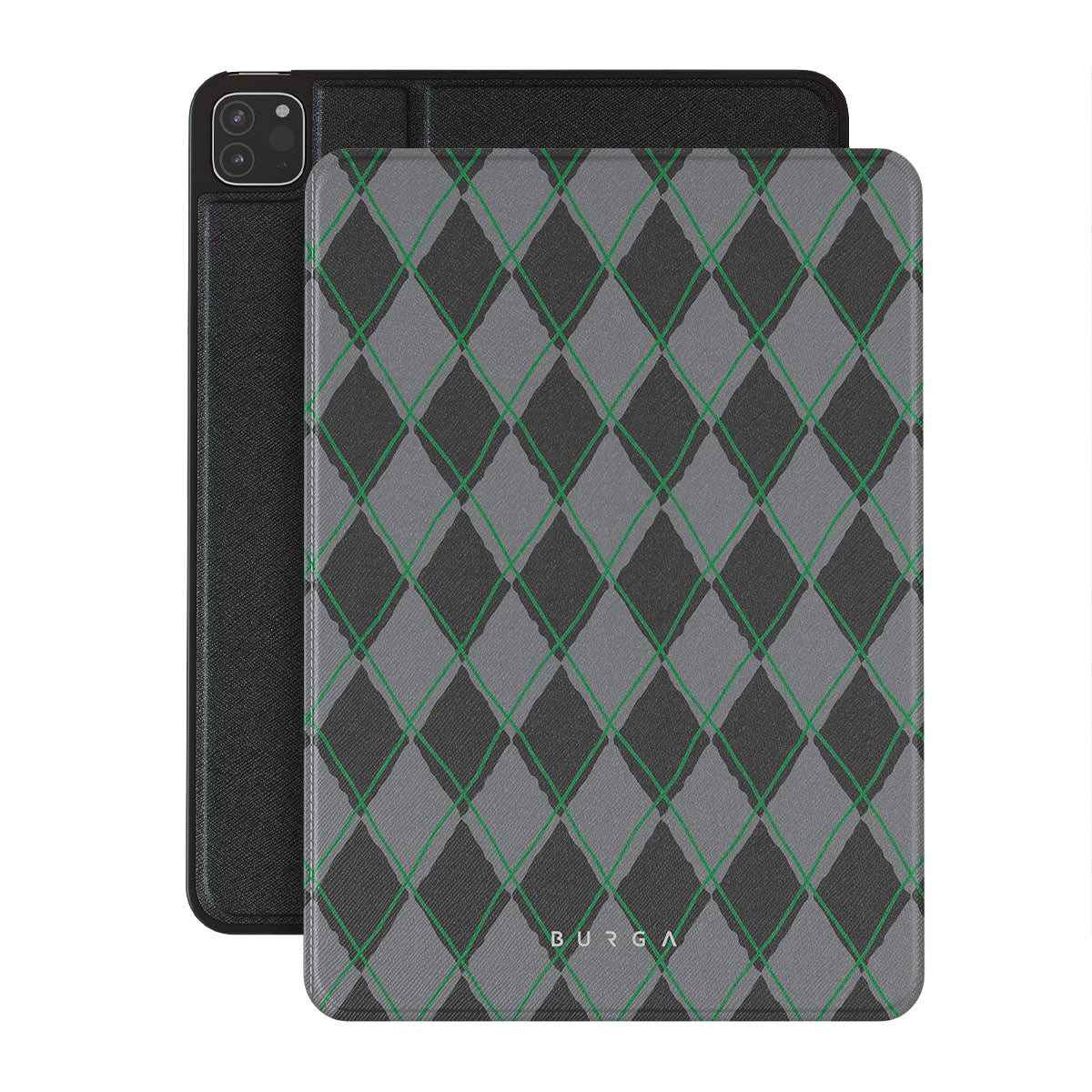 Características de este diseño: patrón de diamantes, verde y gris, patrón clásico, patrón geométrico