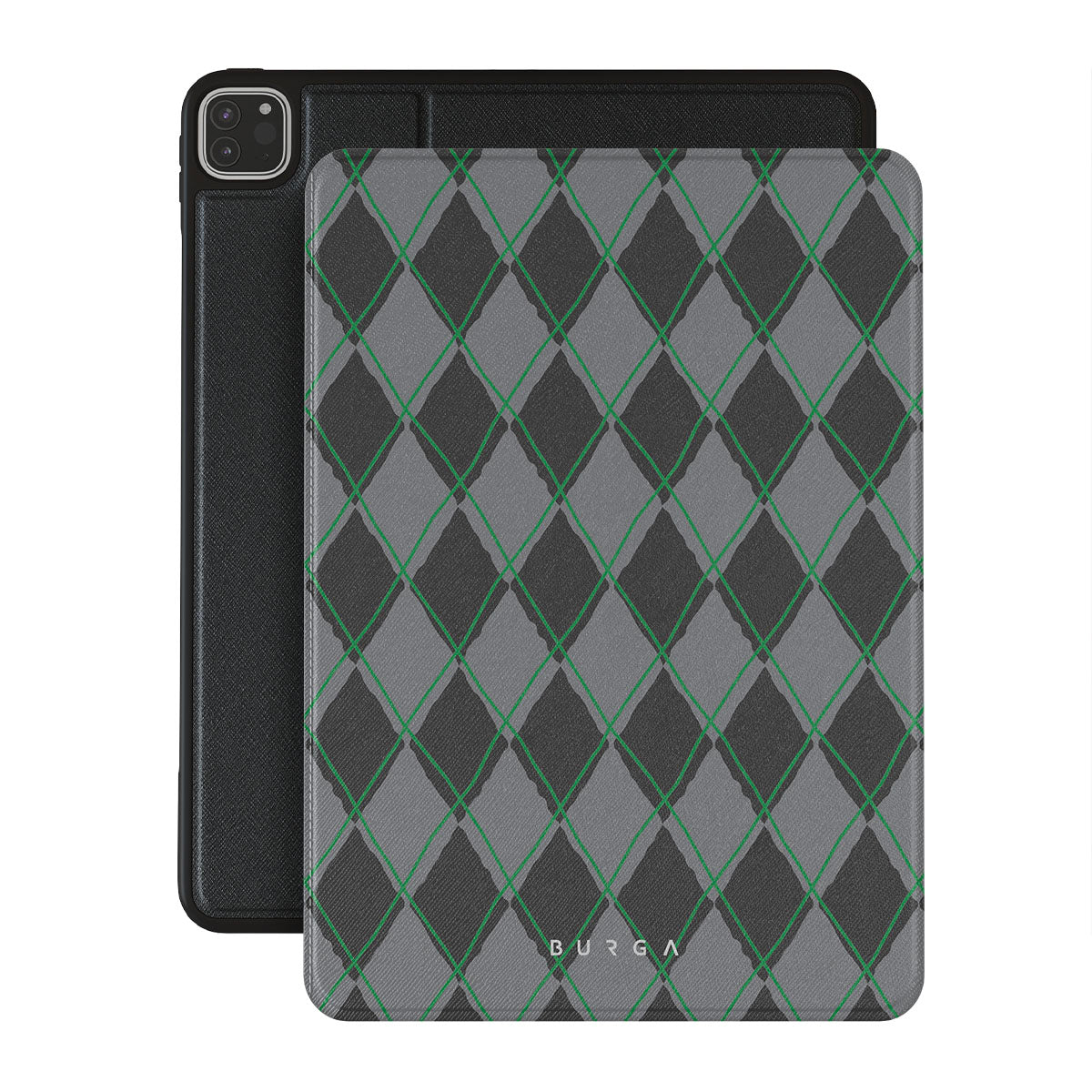 Características de este diseño: patrón de diamantes, verde y gris, patrón clásico, patrón geométrico