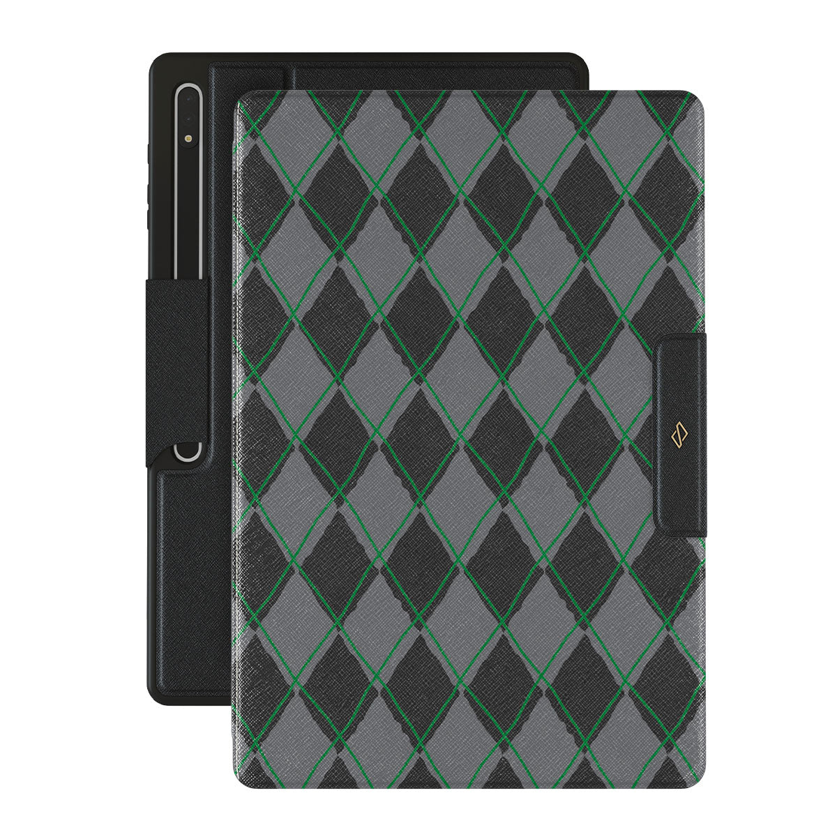 Características de este diseño: patrón de diamantes, verde y gris, patrón clásico, patrón geométrico