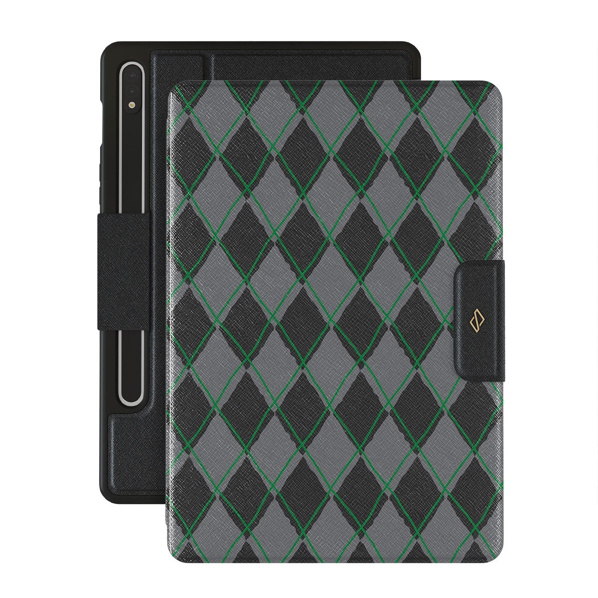 Características de este diseño: patrón de diamantes, verde y gris, patrón clásico, patrón geométrico