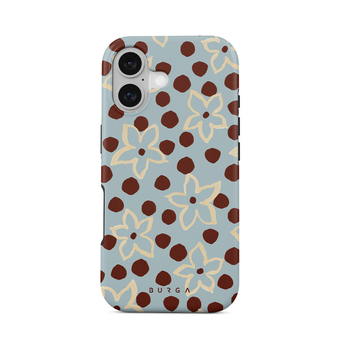 En este diseño: flores, patrón de puntos, fondo azul claro