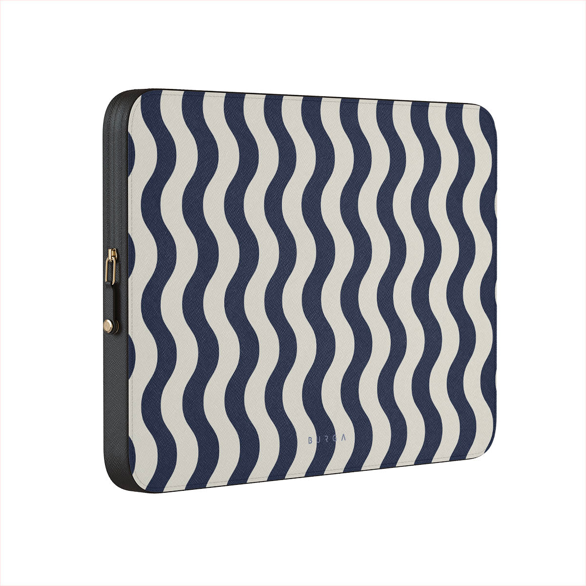 Características de este diseño: líneas onduladas azules, líneas onduladas blancas, patrón fluido