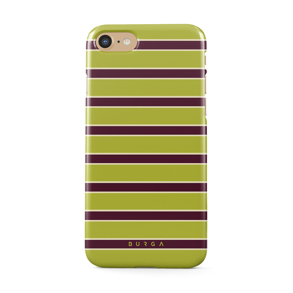 En este diseño: franjas horizontales gruesas en verde lima y burdeos.
