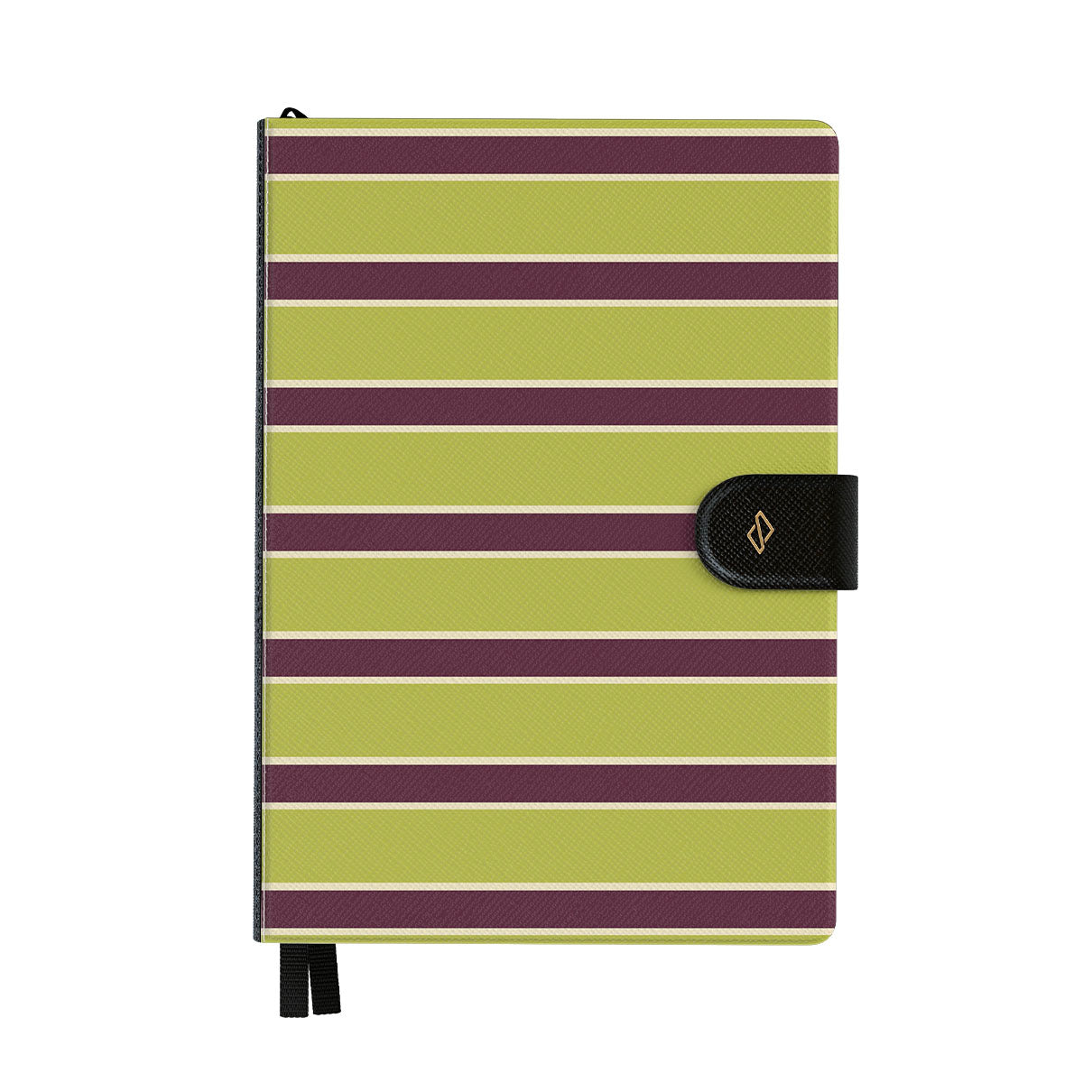 En este diseño: franjas horizontales gruesas en verde lima y burdeos.