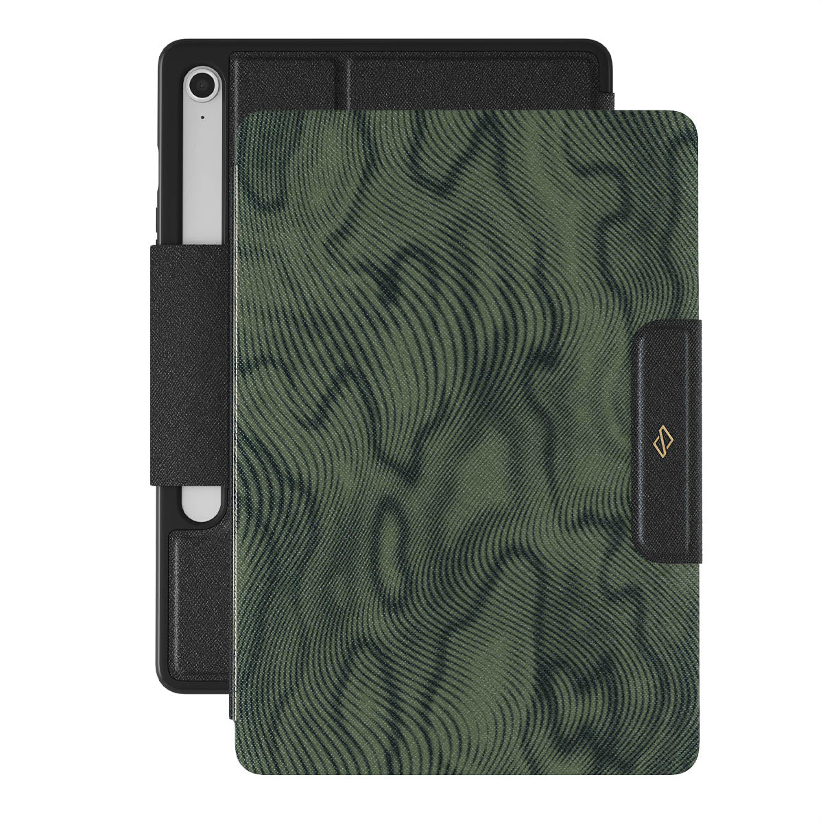 Características de este diseño: verde oscuro, líneas onduladas, patrón fluido, patrón abstracto