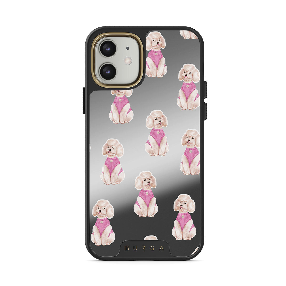 En este diseño: caniches, perros, mascotas, detalles rosas, espejo.
