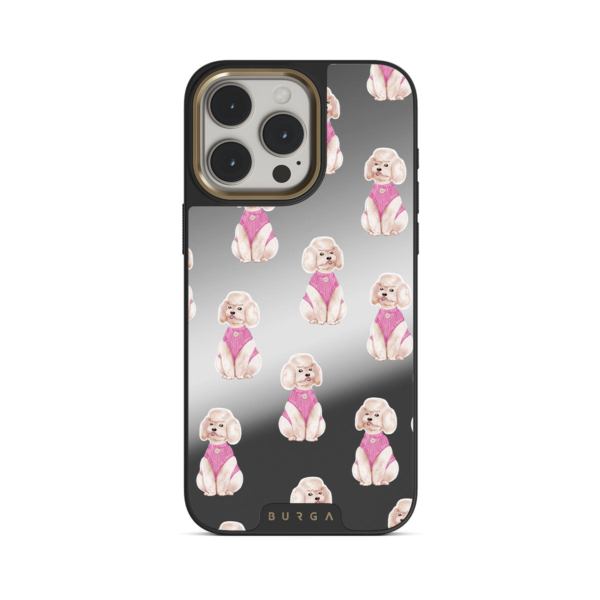 En este diseño: caniches, perros, mascotas, detalles rosas, espejo.