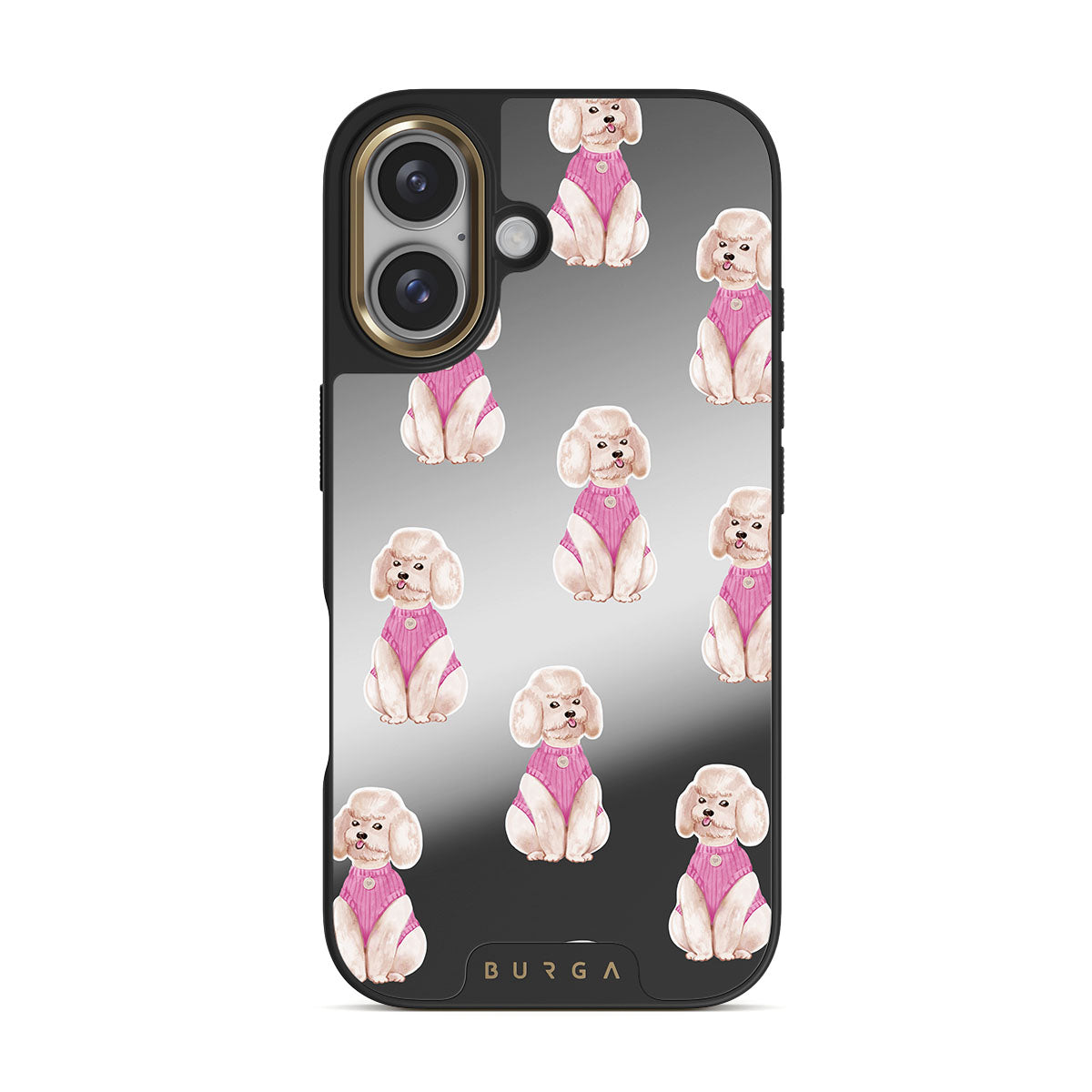 En este diseño: caniches, perros, mascotas, detalles rosas, espejo.