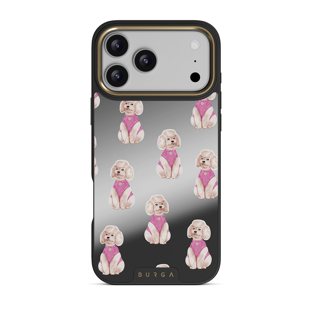 En este diseño: caniches, perros, mascotas, detalles rosas, espejo.