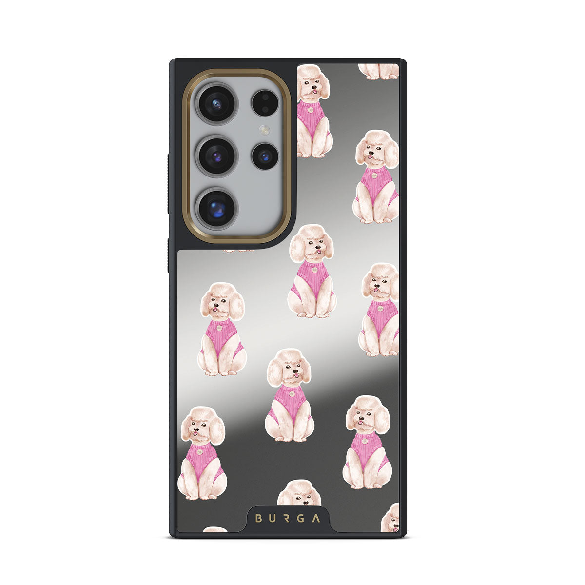 En este diseño: caniches, perros, mascotas, detalles rosas, espejo.