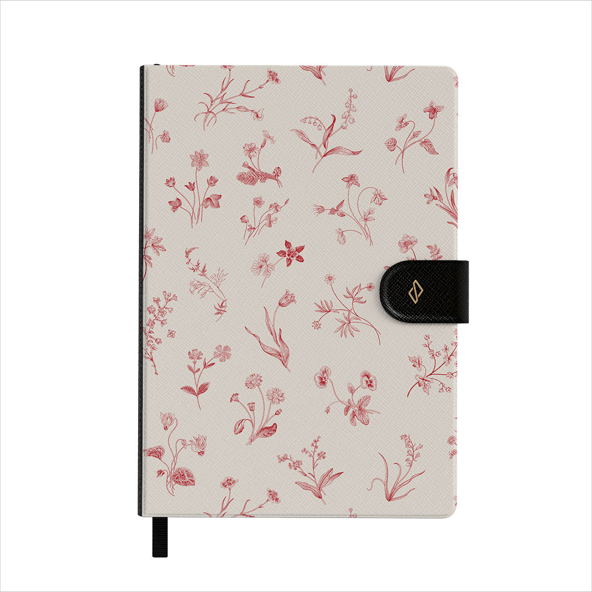 Presenta patrones BURGA bien detallados en una cubierta frontal de cuero sintético vegano. Rematado con un elegante marcador de página de cinta negra.