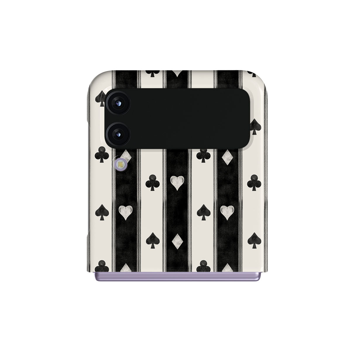En este diseño: rayas en blanco y negro, corazones, palos de cartas, estilo vintage.