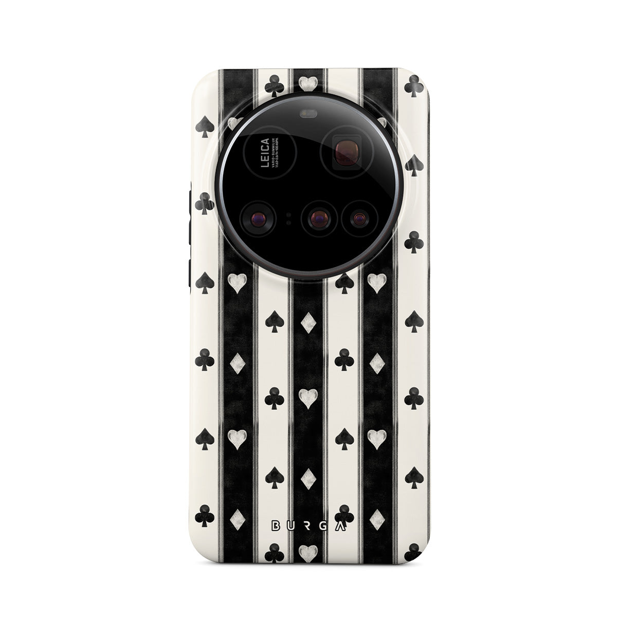En este diseño: rayas en blanco y negro, corazones, palos de cartas, estilo vintage.