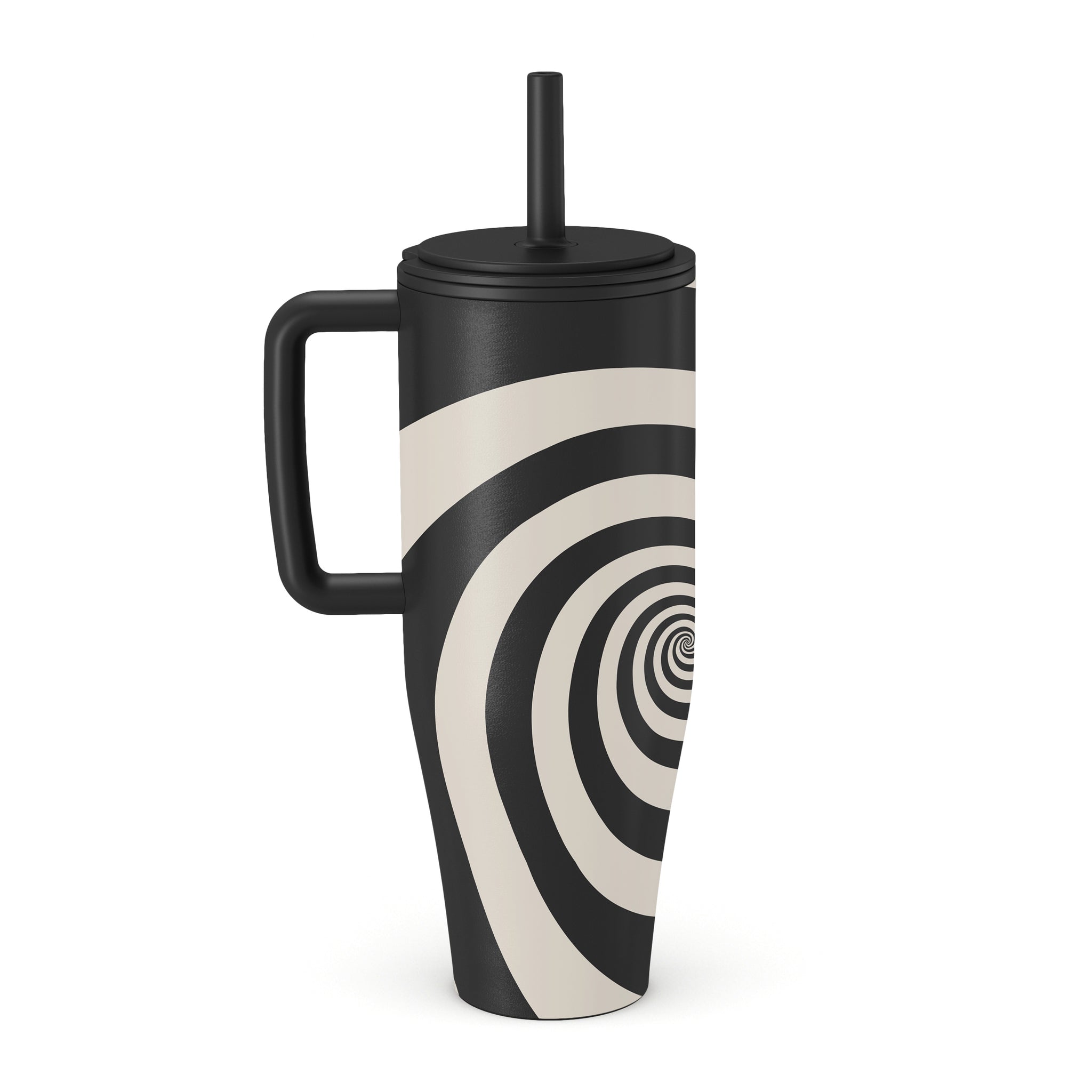 En este diseño: espiral blanco y negro, patrón hipnótico